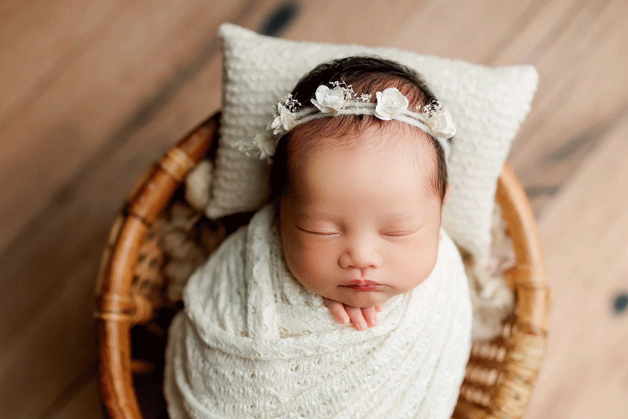 That’s the best part about hiring a professional. I provide everything! My studio is fully stocked with curated props, hand-selected wraps, boutique outfits, bonnets, headbands, soft blankets, and cozy textures so you never have to pack or purchase a thing.
